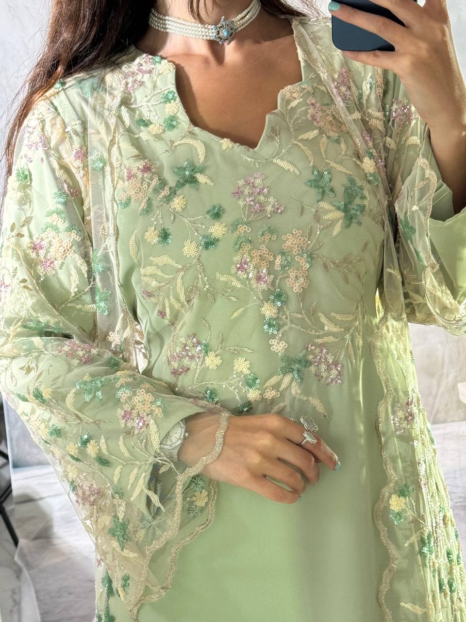This sophisticated two-piece mesh dress features a soft inner slip and a beautifully embellished outer layer with sequins and embroidery. Wear each piece separately or together for a stunning, versatile look perfect for all your special occasions.